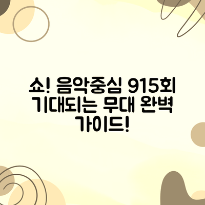 이번 쇼 음악중심 915회는 정말 놓칠 수 없는 흥미진진한 무대들이 가득할 것 같아요. 여러분도 함께 기대해 보시죠!